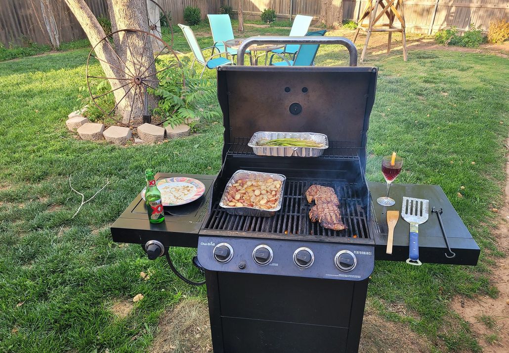 The property has three large bedrooms, two baths plus half bath and laundry room, kitchen, living area, office/dining room, sunroom, back yard with gas and wood grill including mesquite wood for grilling. It is comparable to a nice hotel suite.